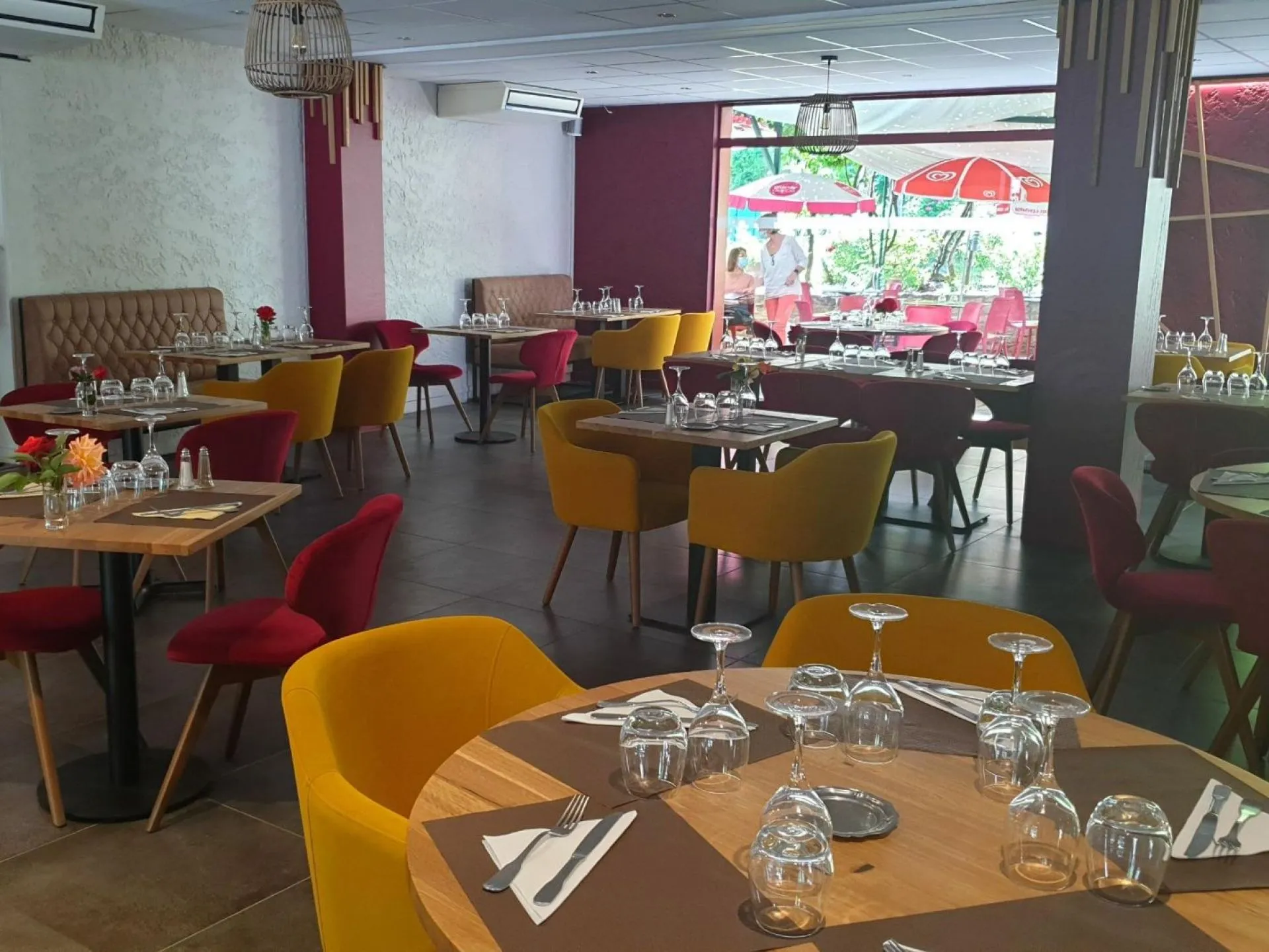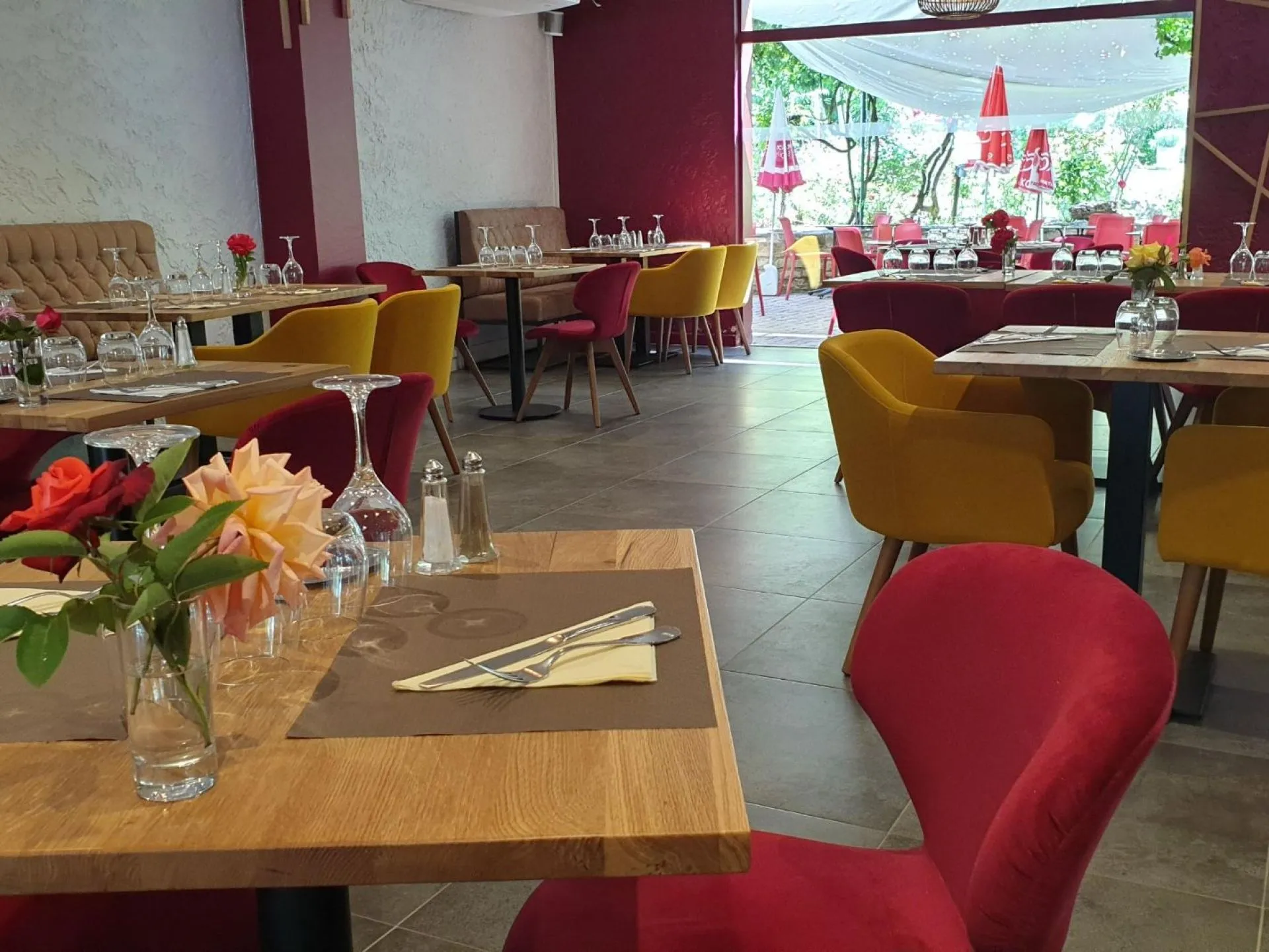 Healthy, sincere, and authentic cuisine is served in the restaurant's lovely, recently renovated dining room, whose contemporary refinement doesn't detract from the friendly atmosphere. This service can also be enjoyed on the charming terrace at the rear of the building, in fine weather, under the shade of a linden tree and a Virginia creeper pergola. A very pleasant setting with its delightful flower garden, which also serves as a backdrop for your family meals, business lunches, banquets, cocktail parties, and other bespoke receptions...
